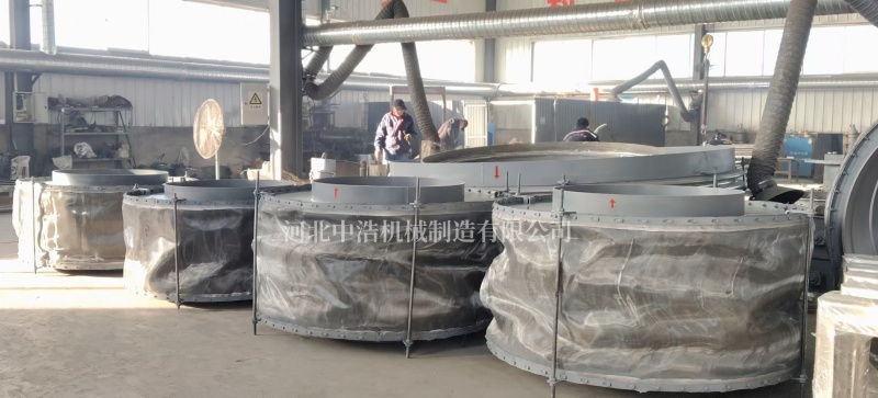 變徑非金屬軟連接其構(gòu)成有著不同特點,其中蒙皮部分由多層纖維織物材質(zhì)組成,且可根據(jù)具體工況選擇合適的材質(zhì)組合,且蒙皮具有伸縮范圍寬、柔韌性好,耐溫耐腐、阻燃和吸音降噪功能力。金屬框架為軟連接提供支撐和固定作用,內(nèi)部導流筒有效減少介質(zhì)腐蝕,增強使用壽命,提高介質(zhì)流通性,同時內(nèi)部可增加保溫棉等材料,減少熱散失,提高能效。因此,非金屬軟連接廣泛使用各種領域,如火力發(fā)電廠、鋼鐵廠、冶煉廠以及各種除塵器、鼓風機等設備排風系統(tǒng)中,還有其他需要吸收熱脹冷縮、補償位移、降音減噪等工作條件中。